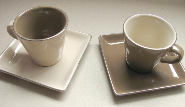 Иначе наистина са много симпатични, а и има заигравка с цветовете - може да си направите четири различни комплекта чашка с чинийка Grinning