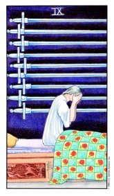 Сега...извън това, че мечовете управляват менталната енергия, т.е. цялостното послание е "помисли добре, преди да действаш", всички тия карти са свързани с болка, страдания, разбито сърце...