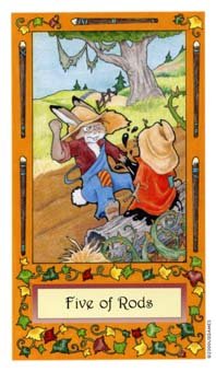 Вероника, 5-цата жезли има много значения и трябва да си я тълкуваш в зависимост от ситуацията ти. Може да е кариерен ръст, борба, състезание, изпити, конкурси, конкуренция, а може да е напразни усилия.