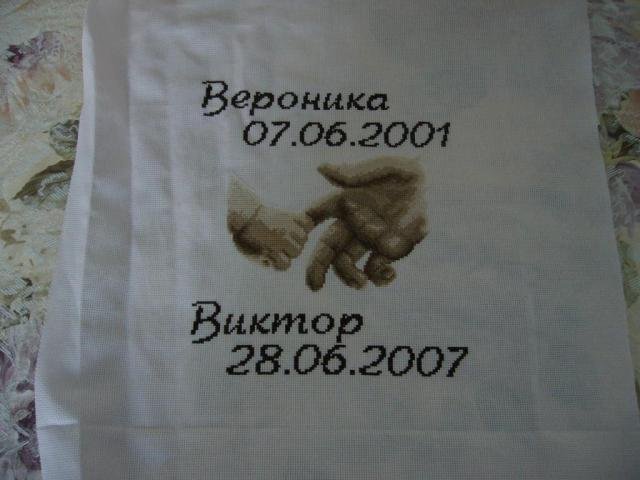 donsita, браво бе, кога успя да ги направиш тия две ръчичики?!?  Shocked  и с тия големи красиви надписи... браво. явно шиенето по пейките е доста ползотворно. да взема и аз да опитам ли?!  newsm78 и аз бих взела схема за тези букви