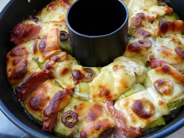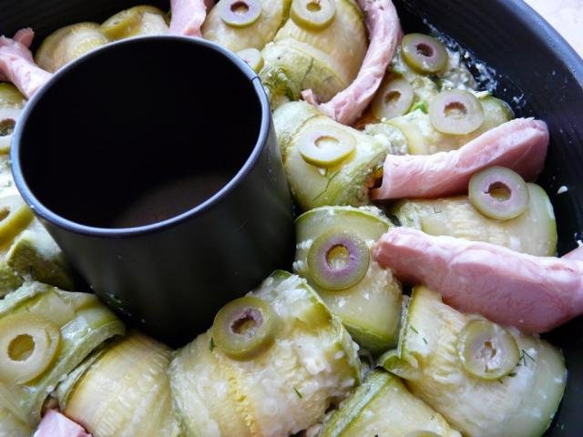 Аз ползвам 1 кофичка заквасена сметана на Данон, и една голяма консерва – мисля че е към 800 гр цялата със сока, и часто от шайбите ги слагам отстрани, тези които ми останат си ги нарязвам и ги слагам средата, за да не купувам 1 консерва на шайби, пък 1 на парчета, като че ли не мога да си ги нарежа