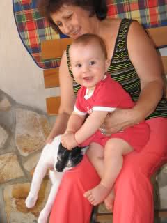 Скреч - абе и Деската като го видя Ники каза, че според нея скоро ще си имаме зъбчета и аз като гледам венеца ми се струва, ама ще видим.В количката и Ники често докато оправя чантите да излзиаме и той прави пируети, но не е падал и ща щастие..., а за Миташки - едно голямо гуш на мънинкото.КОлата на снимките си бе позиционирана там, дай боже всеки му такава Simple SmileИначе съм захранила с почти всичко и не е имал проблеми до сега, но новото беше,че майка приготви няколко неща(картофена яхния и доматена лятна супа с картофчета, без подправки и т.н., пасирах и му дадох, може и от тях да е образувал коликите), незнам , но спряхме всичко това, за сега мисля си чее   добре.