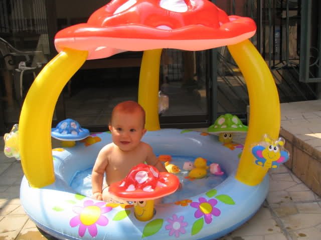 Бебоците явно много се кефят така във водичка, аз още не съм го слагала Стефан да се плицика в басейнчето.