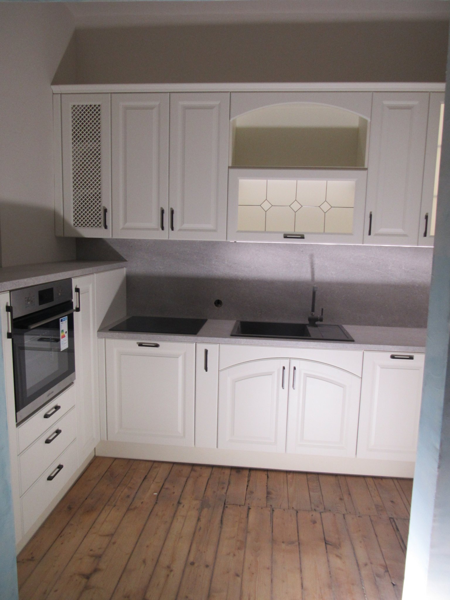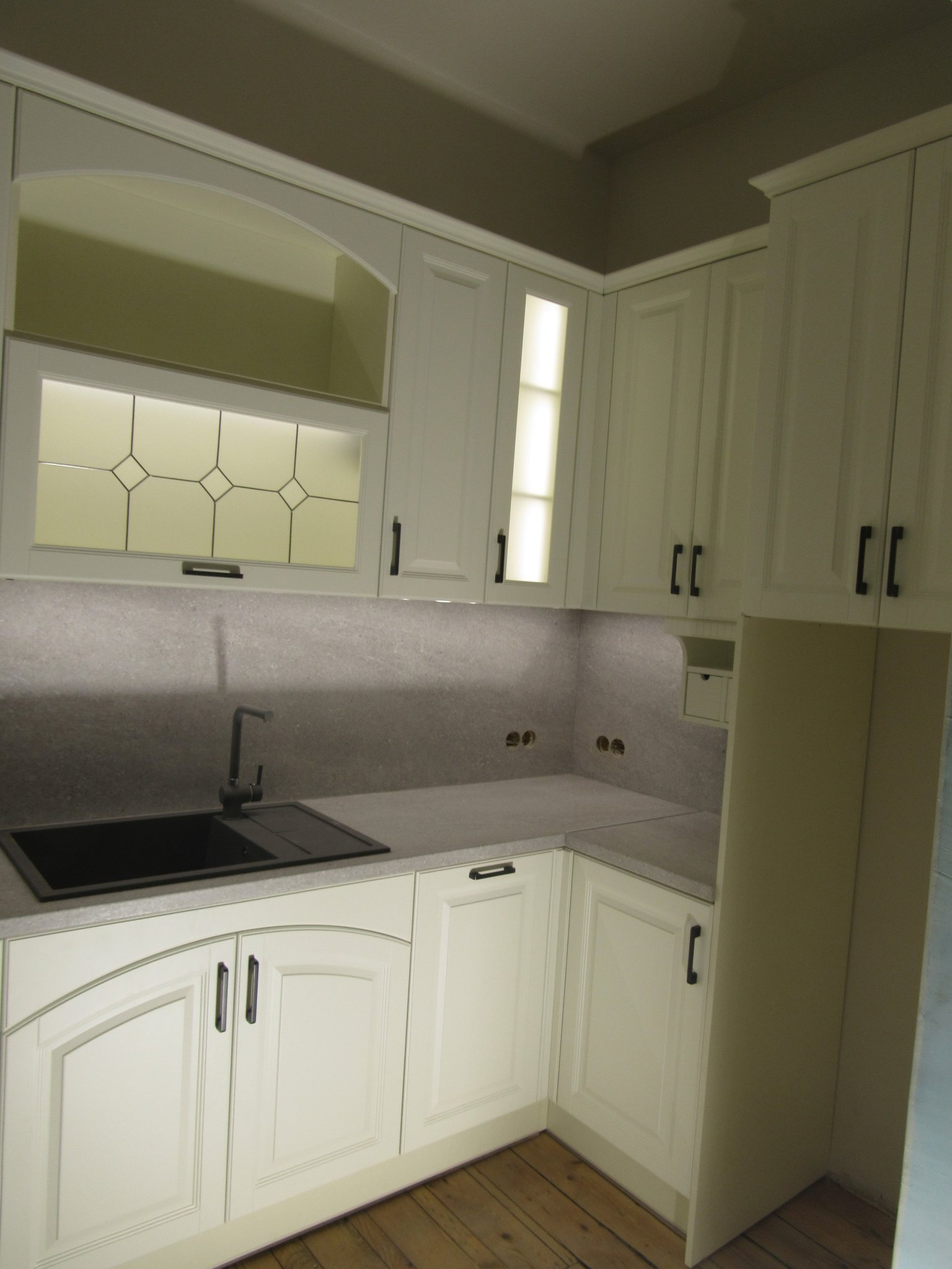 Забравих да допълня, че със силикон уеднаквихме милиметрите кривини между шкафовете и стените. Това ние си го направихме и не се вижда на първоначалните снимки в груб вид.