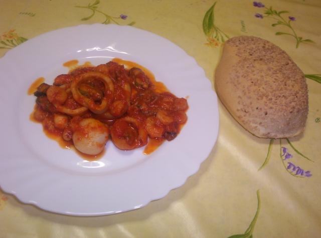 Морски дарове в подлютен сос
