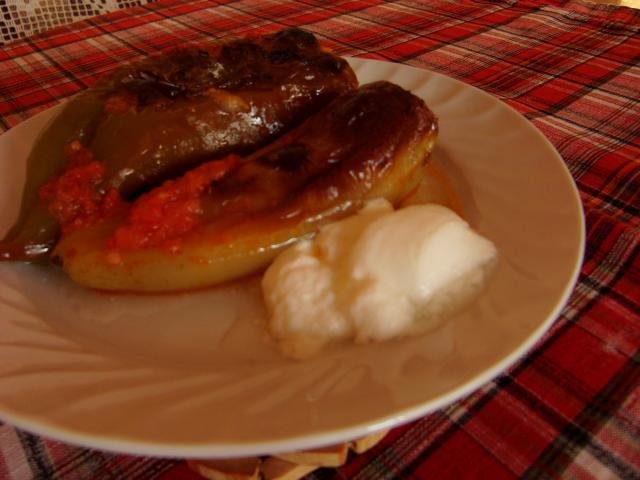 тази вечер пълнени чушки с кайма и ориз,а с яйца и сирене немесоядните.За десерт торта "Мюсли"