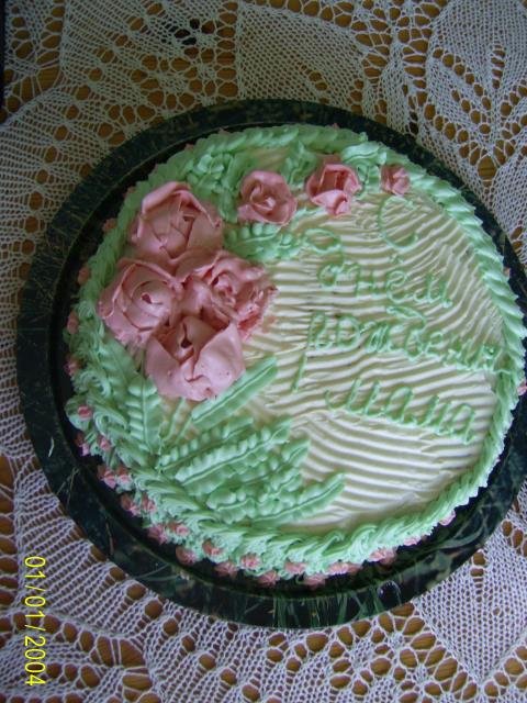 Едната торта е изцяло с маслен крем, обаче много е горещо и нямам хладилник в момента и розите при пренасянето се разкапаха, няколко пъти ги преправях, но кремът е ужасно мек- добре, че тя е за вкъщи. Laughing