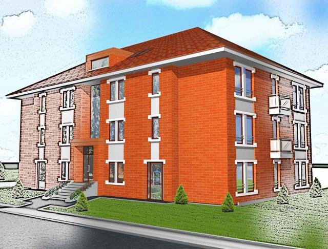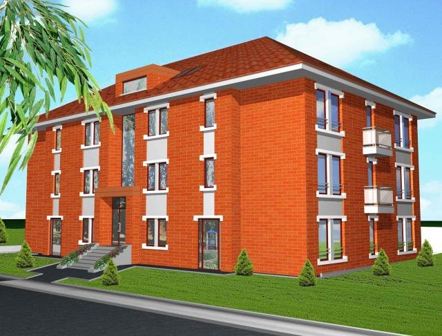 Първата картинка е 3D визуализация на архутектурния проект на тази къща. Моята приятелка го е "вдигнала" в 3D studio Max , а аз имам за задача  да я "облека" : тухли, прозорци, кремеди, треви , така че да изглежда възможно най-реалистично ...