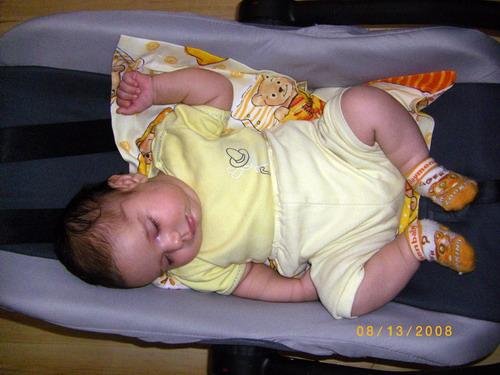 Елито напоследък започна да заспива в столчето за кола като сме в къщи и спи по-дълго, иначе трябва да я разнасям на ръце. Може би и харесва да е по-свита, а и от време на време сама се залюшква.