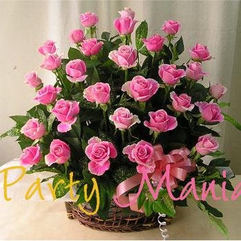 Кошничка с рози, целувки от мен. Поздравявам те мила за РОЖДЕНИЯ ДЕН.