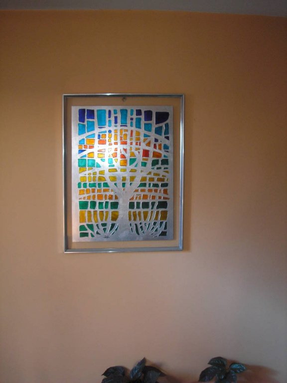 FREZZ ,поздравления за ентусиазма HugМога ли да дам съвет...и да не може-давам Laughing Когато правиш изцяло стъклен обект с повече от една страна,гледай фигурите да не се покриват една друга,поставяй ги по диагонал,шахматно,така ще е много по-красиво.Опитвай се когато полагаш боите да не стои на четки.За да ти е лесно за фона може да ползваш малко парче гъбичка.