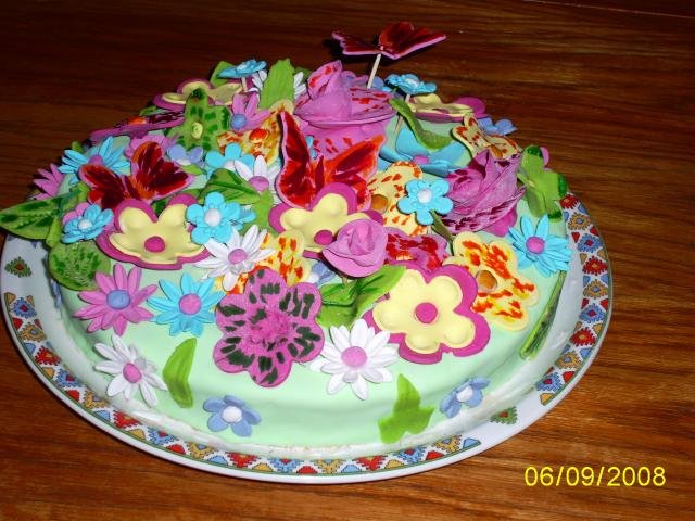 Краси,останаха ми очите в тия цветенца и пеперудки.....направо да те е жал да я разрежеш после тая торта.