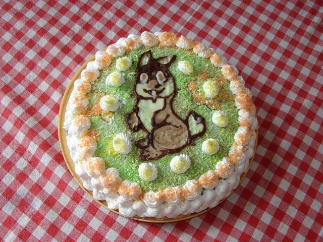 Та при нашите реших лично да спретна тортата, това предизвика вълна на ужас у всички. То бяха молби и увещания да вземат готова, но аз не и не ... Резултатът беше учудващо вкусна домашна торта, ометохме я на бързо и родата се покая за недоверието  Mr. Green Mr. Green Mr. Green /макар че оприличиха заека на вампир, куче и др. подобни/