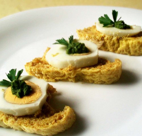 Дукански сандвичета с яйце и "песто" от много подправки  hahaha