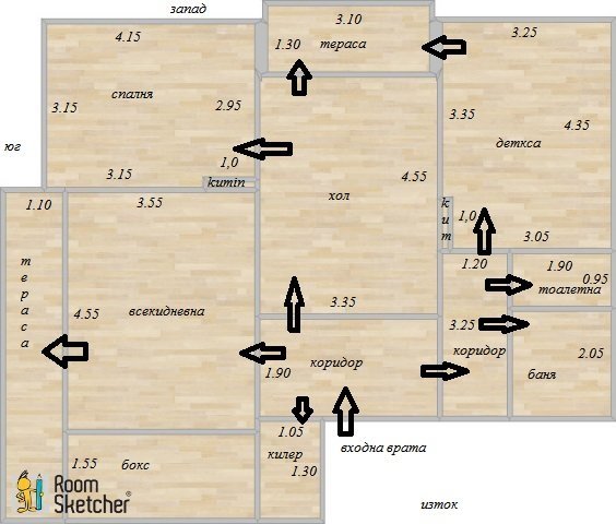 Закупихме си жилище старо стоителство 100 м2 ЧЗП , предстой ми цялостен ремонт както се казва от А до Я. Имам нужда от архитект или стройтелен инженер или архитект дизайнер и аз незнам за това търся вашата помощ. Искам да направя преустройство на жилището т.к. едната стая е преходна а искам да няма да преходи. Необходимо ми е (поне така мисля) точно измерване на жилището и стаите и няколко варианта на това кое и как може да се разруши и изгради. Имам вода и мръсен канал от към бокса и от към детската където е тоалетната (прилагам и скица на апартамента направена и измерена от мен и незнам до колко е точна, но съм се постарал, там където са стрелките това са врати). На първо място траябва да реша как ще изглежда апартамента, след това за схеми на ел.инсталаций , вик , парно, и евентуално на вътрешен дизайн, в зависимост от цените и офертите разбирасе. По принцип апартамента се намита в Стара Загора. Вие какво бихте ме посъветвали и кък кого мога да се обърна !!!???