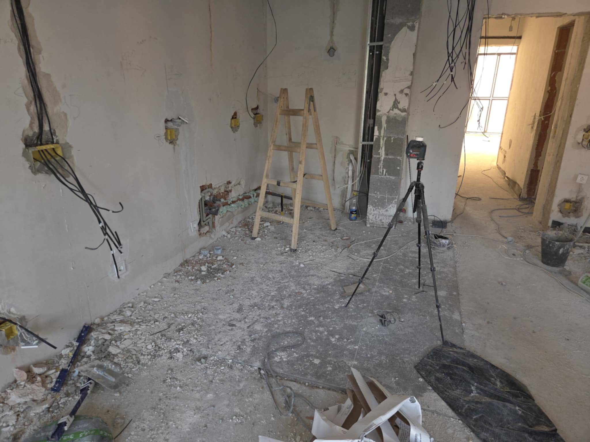 Стигнахме до баните (плочки) , плочките в кухня, мокро и коридор и полагането на ел. инсталацията. Както той го нарича " акт 1 - мръсната част". От месец и нещо ни обяснява как "завършват" този акт, а все няма никой в апартамента. Все всичко беше: днес, утре , 2 дена...