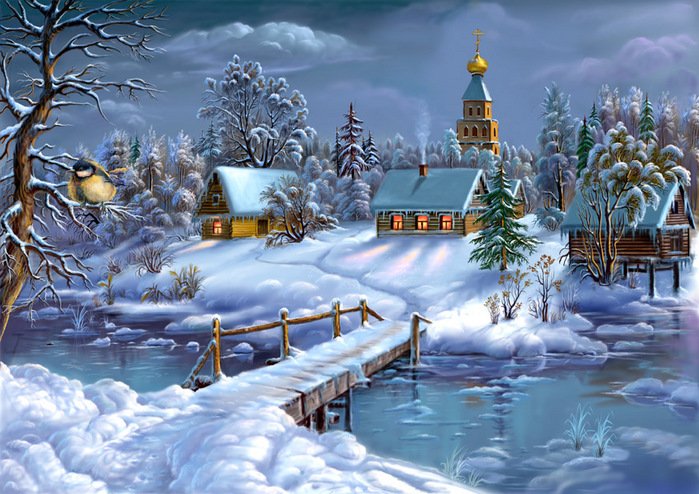 Реших да споделя с вас тази картинка ! Има едно село край София (може вече да се води и квартал)- Бусманци  ! Преди 2 години за последно бях там , беше навалял сняг и малкото площадче между църквата и училището прилича много на тази картина-  като излъчване  !  Чувството беше мн вълшебно , и като я видях и си спомних !
