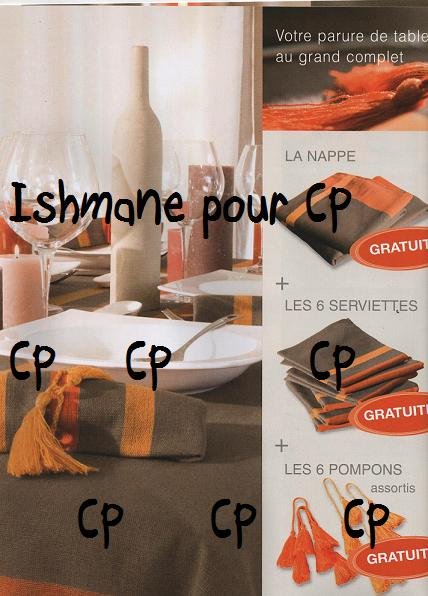 Ето снимка на подаръка с код 17728, 22667 или 22683 - покривка, 6 салфетки и 6 понпона