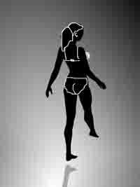 Долу пак е един и същ силует, но на първата картинка върху него са очертани мислени вътрешни контури така, че да изглежда вдигнат десният крак. На втората - левият. При силует в абсолютен профил както в случая аз виждам само два варианта на положение на тялото.
