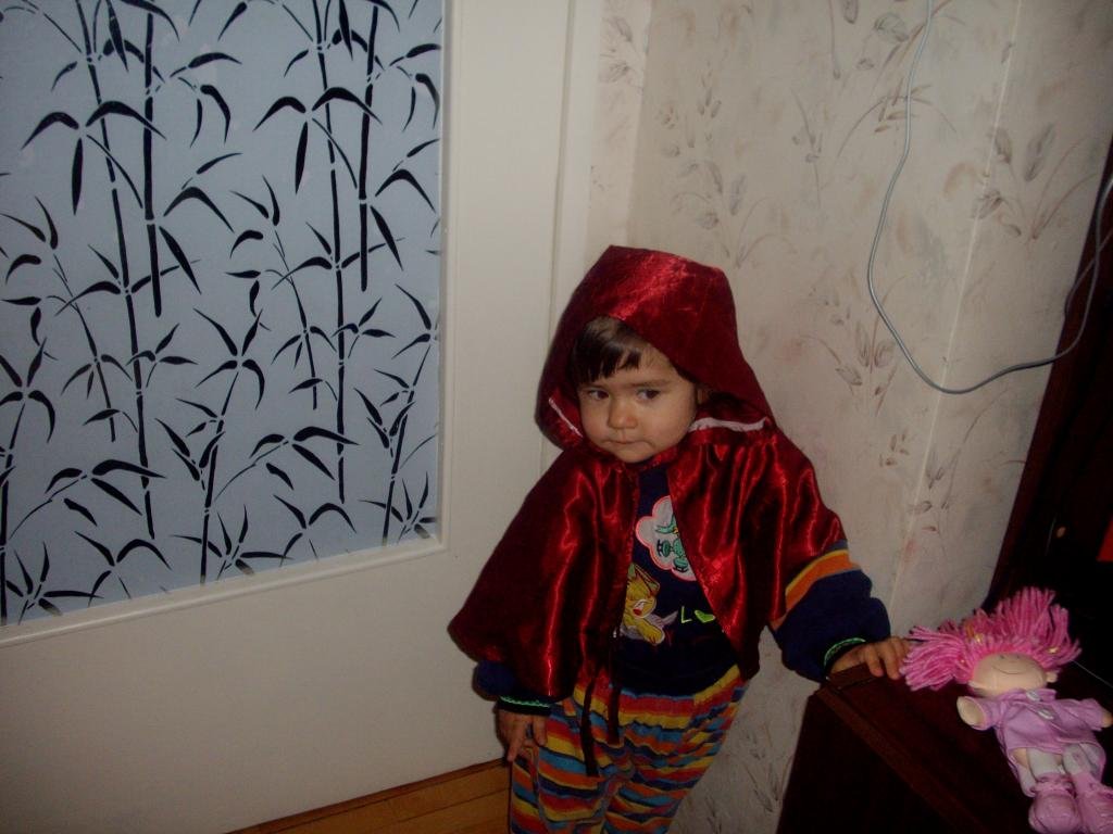 Моята маймунка вече има ушита червена шапчица за неделя, но не иска да я носи. Едвам я щракнах и то от третия опит. Сваля я за секунди. Та се чудя как ще е маскирана в неделя?! Confused