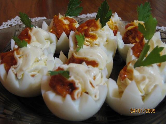 едни пълнени яйца с крема сирене,майонеза и лютеница
