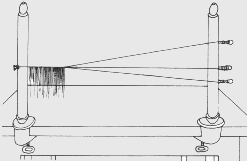 Това са три конеца опънати между тези две дървени стойки и между тях се вплита косата! На долните снимки са показани различните начини на вплитане, косата ( вземат се около 20 - 40 косъма )се прекарва по този начин между трите конеца и накрая се избутва с нокът в ляво. При тресирането се губят около 2-3 см. от дължината на косата. Аз съм успявал по 25см. за половин час което е като рекорд. Най използваният метод е първият така нареченият - обикновено немско тресиране. Peace