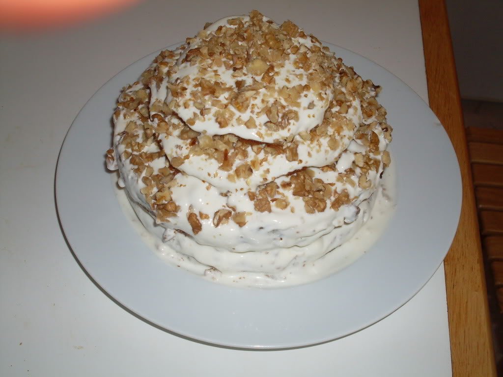 Блатът ми се наду много, но за съжаление се надигна така, както се надигат повечето ми кексове - неравномерно. В средата блатът ми се наду неимоверно много, но отстрани си остана нисичък и като резултат в средата се получи едно доста височко купелче, което се чудих какво да правя. Не правя много често торти, но все пак съм правила достатъчно и досега блат за торта никога не ми се е надувал така. Не знам дали го обясних добре, но ето нагледно готовата торта: