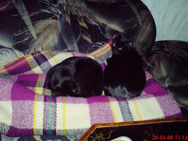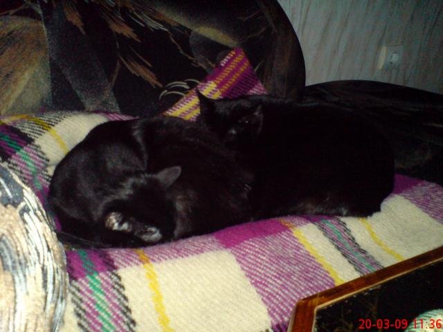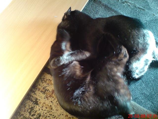 Тез дни моите котаци доста добре се разбират..чак се плаша да не ме дарят с котенца  ooooh! Добре ,че като ни няма са в отделни стаи Whistling Ето и малко снимки, не са с добро качество,но такива са ми възможностите сега...  Mr. Green