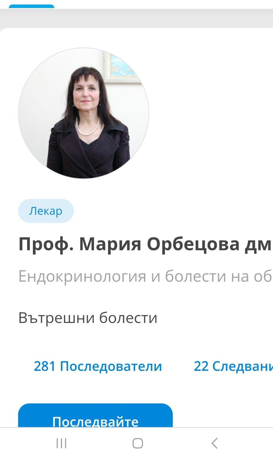 д-р Мария Орбецова, която беше началник на клиниката по ендокринология в св. Георги Пловдив