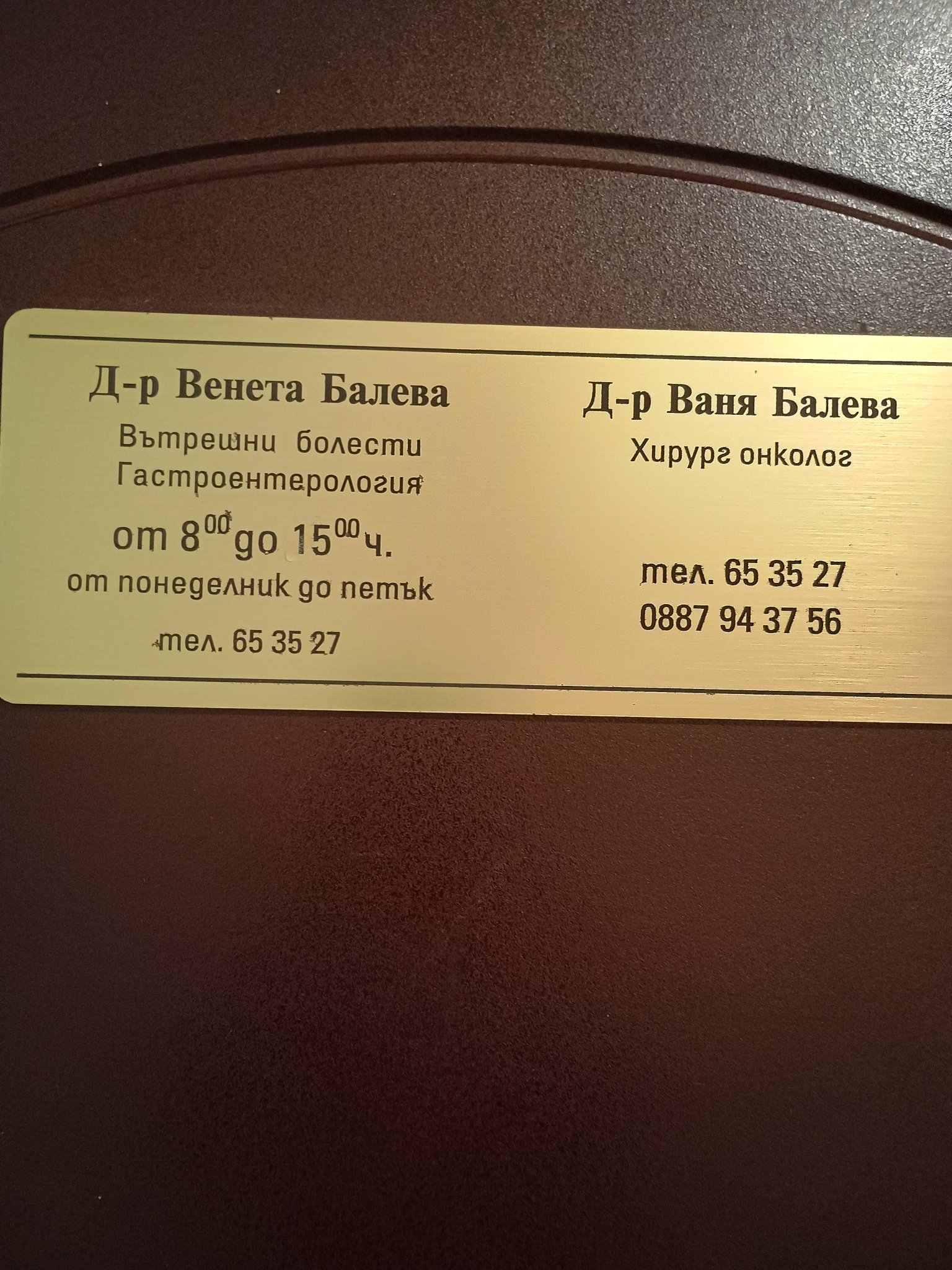 търся някаква актуална връзка за платен преглед при д-р Ваня Балева, хирург и онколог.