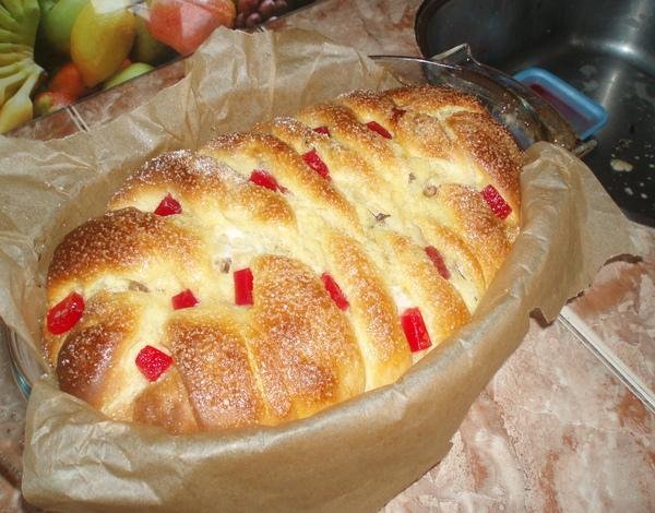 червената украса на козунака от какво е? Много хубаво е станало  Peace