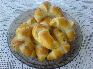 Замесвам меко тесто и  разделям  на 15-16 топки, които разточвам леко, намазвам с разтопена мазнина/кр.масло/, наръсвам с настърган кашкавал, навивам на пръчки и връзвам един път, като охлювче.Оставям ги да втасат, намазвам с жълтък, поръсвам с мак и сусам и пека на умерена фурна.