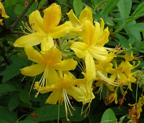 Това е вид Рододендрон или както му викат жълта Азалия: Gelbe Alpenrose//Rhododendron luteum//
