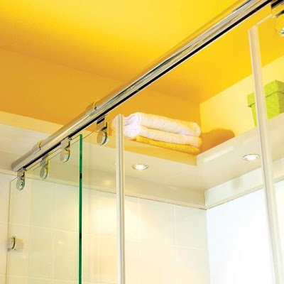 Mamanin,момичета,моля,никой ли не е виждал такава PVC щора?!На снимката на тавана на банята е поставена кутия като тези на прозорците и от нея се спуска роло щора(има цвят на матирано стъкло).Питах и в списанието,но статията е отдавна и не е сигурно дали ще ми помогнат!Другото,което ми върши работа е параван тип"хармоника",но ги правят до 100см.,а при мен е 115.Питах във фирма за щори-имат само от гумиран плат!