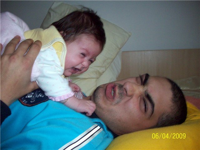 Ето и от нас една смешна поне за мен снимка.Преди няколко месеца,т.е.Белослава беше на 1 месец бях на банкет.Прибирам се късно вечерта отварям вратата и ги заварвам двамата с татко и да спят.И да хъркат  hahaha Въбще не разбраха,че съм се върнала.Аз се изкъпах и чак тогава отидох да ги сложа по леглата.