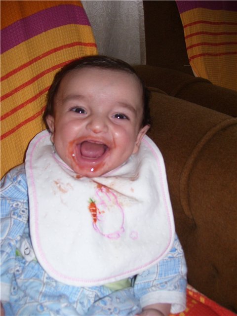 Не налагам нищо от горенаписаното, просто споделям с вас аз как съм процедирала с Дарко и как смятам и този път. След 5 навършени месеца (дай Боже да имам кърма дотогава) ще започна да предлагам различни храни без да бързам да замествам. в зависимост от интереса му към храната от 6-ти месец ще започна да захранвам по-настоятелно. Идеята  ми е да хвана по-богатите на слънчеви  зеленчуци месеци (август, септември) и по възможност наше производство.