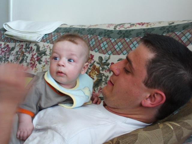 Чакайте и аз да ви покажа няколко снимки, то нали все нямам време, ама днес има, не е като да няма, та да видите и моят малък мъж с панталони, а и как се забавляват с баща си, това са двамата ми любими мъже Simple Smile