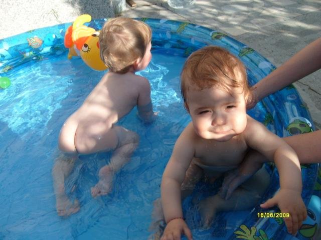 Крис, и ние тук си устройваме водно парти, но в банята, че няма къде да сложим басейна, поне за него има място вътре... снимки ще се опитам да направя скоро на двамата ми плувци  Sunglasses