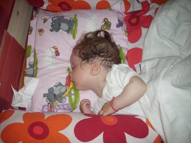 Научи се нашата момичка сутрин към 7.00 да я взимам при нас. Папка и после спи така докъм 10.00. Голям кеф, ходи из цялото легло Simple Smile