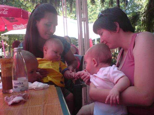 Сега се върнахме от консултация.6420 гр и 65 см.Док каза след 2 седмици да почвам с пюретата.Аз нали се опитах да дам морков ама не и хареса и повече не повторих.За слузта ми каза да не се притеснявам за сега.Имало нещо като бебешки колит,та от това може да е.Биха ни 3-я пентаксим и дано да нямаме странични реакции и този път.
