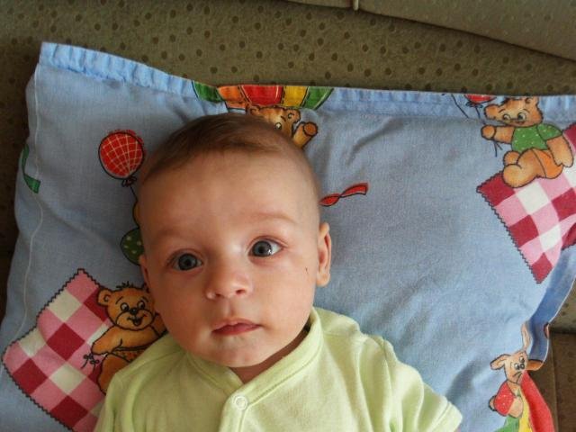 И да не си помислите, че спи на възглавничка, с нея го подпирам да не се обръща много, много, че като се наяде любимото му занимание е да се обърне по кормче и да повърне Simple Smile