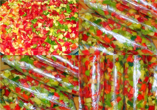 Аз пък днес си нарязах чушки за фризера, бяха разноцветни и толкова пъстри и красиви, че ги щракнах. Ама снимката ми хич не отразява действителността. Все пак.........малки късчета лято за зимата! Peace