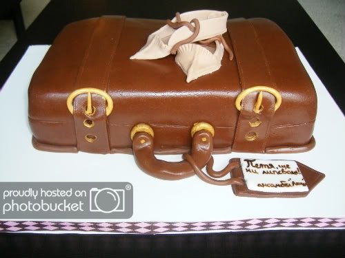 Не се чудете за "това" върху куфара-цървули са. Дано си личи  Praynig , че ми е поръчка. Извади ми се душата с тези цървули, ама се заинатих и ги направих. Тортата е за момиче, което се завръща в Бг, поръчителят е местният ни ансамбъл по народни танци, в който тя участва...затова и цървулите.