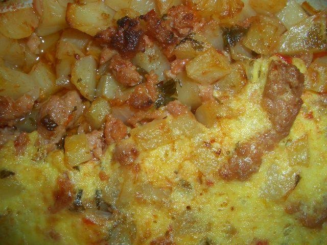 И една запеканка с картофи гъби,царевица,морковки и кисели краставички.Планирана беше като картофено руло,но не се получи.