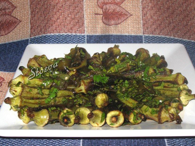 и за отлежаване до утре вечер една салата от пукана бамя и люти чушлета