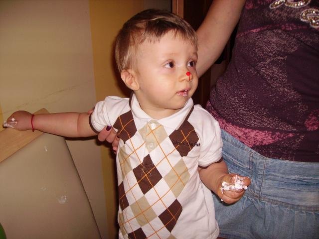 Нашият рожден ден не мина много добре,детето цял ден беше нервно от толкова много хора и  внимание, и само мрънкаше.Още сутринта един балон се пукна в ръцете му и много го изплаши.И от там се започна,направо не можех да го позная, нищо не му харесваше.Но това беше само за 1 ден,на следващата сутрин пак се събуди усмихнат.  Grinning Вече ходи много добре,ходи си сам из целия апартамент,а навън не ми дава да го държа за ръка,иска сам,което разбира се е много по-трудно за мен.В неделя ще му правим прощъпулник.