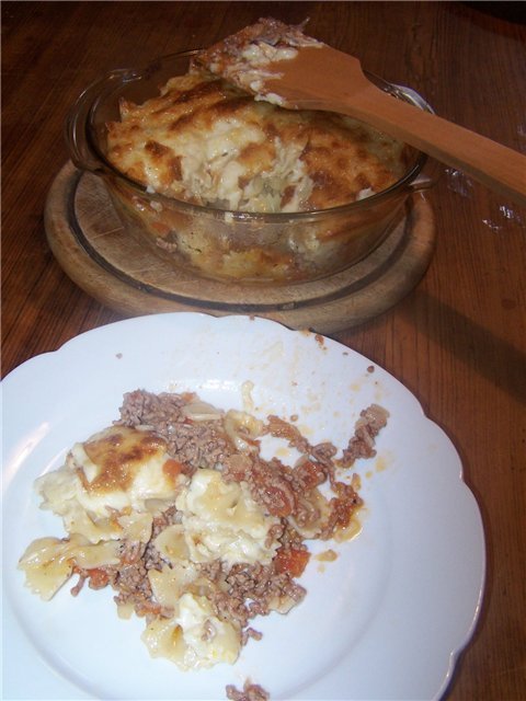 От мен, едни макарони с кайма и сос бешамел, които приятелят ми сготви по португалски. Бяха нееееееееевероятно вкусни!