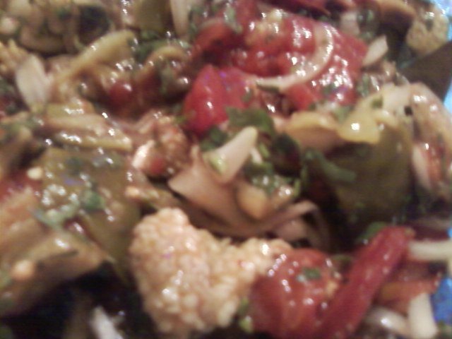 Колко добри хора има в селото - носеха ни градински домати,чушки, краставици,грозде....нямат нищо общо с тези, които купувам тук от пазара.....Как ухаят само доматите.... Направих си и любимата салата с печен патладжан.