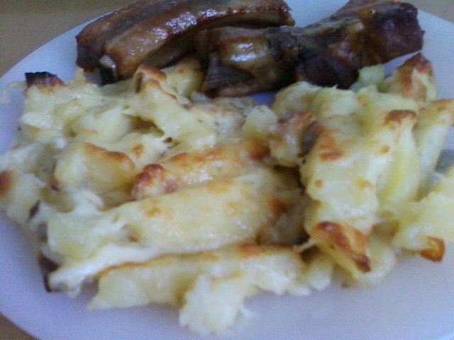 За  обяд печени ребърца  и сърдитите картофки на Гита !