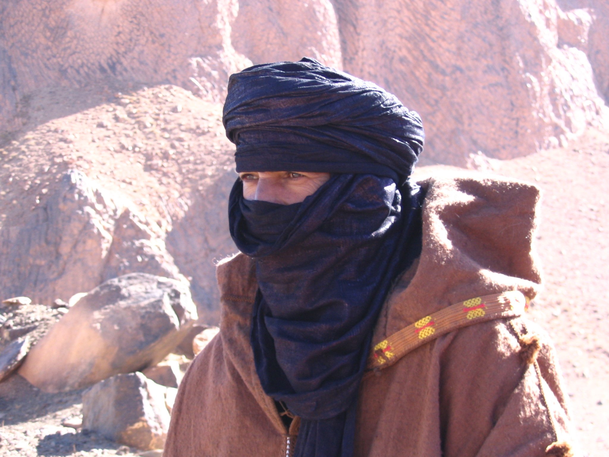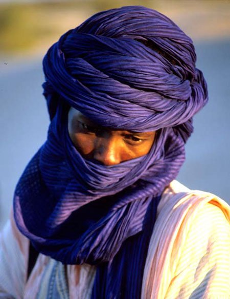 Морска пяна - Ми това е типично мъжко покриване Ha xopaTa Tuareg/Touareg=Туарег/Тоуарег --> бедуинскu/берберскu xopa ...носи се най-вече за да предпази от слънцето(Т над 50 градуса) и пясъка(пясъчните бури)(B Северна Африка - Либия, Алжир, Mapoko, TyHuc etc.). Като се има предвид,че тези хора са били (и все още някои от тях си остават) номади, постояното местене , ходене из пустинята, напълно разбираемо е ,че шалът е използван за защита от природата.  Кърпата се нарича tagelmust=тагелмуст(t.e.тюрбан); характерното за него е ,че може да е дълго над 10 метра  Whistling(т.е. да може да се приспособява за максимално покриване : глава, шия, лице, рамене etc. ), характерния цвят е индиговuят (но може да бъде и др. цвят - бял, черeн):